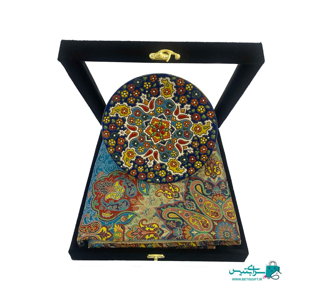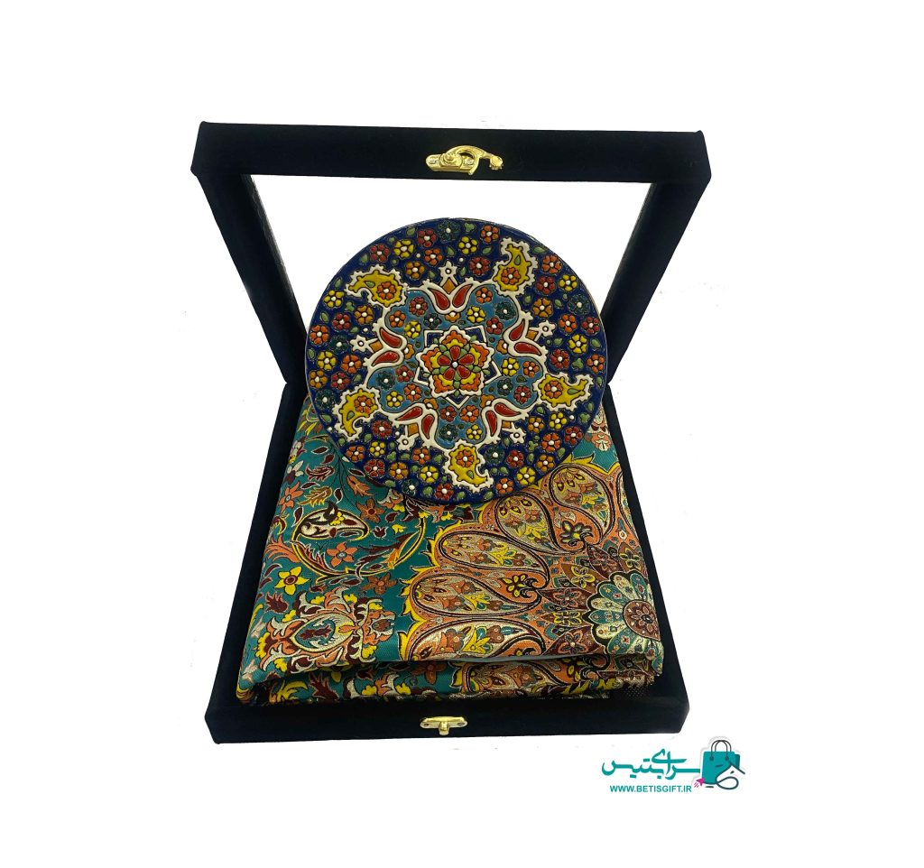 ست هدیه بشقاب میناکاری و رومیزی ترمه یزد