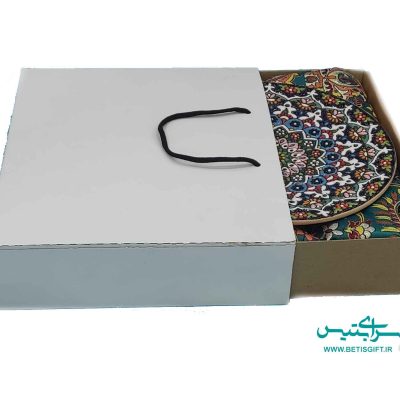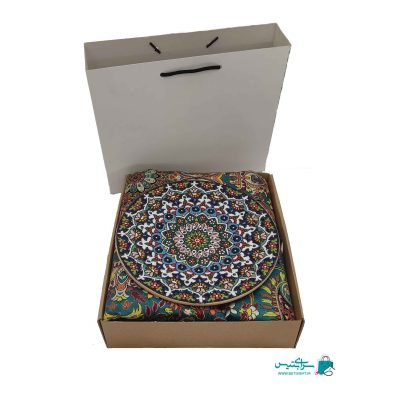 ست هدیه بشقاب میناکاری و رومیزی ترمه یزد