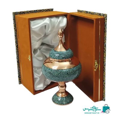 ست هدیه جفت گلدان 20 و شکلات خوری 30 فیروزه کوب به همراه جعبه هدیه روکش ترمه