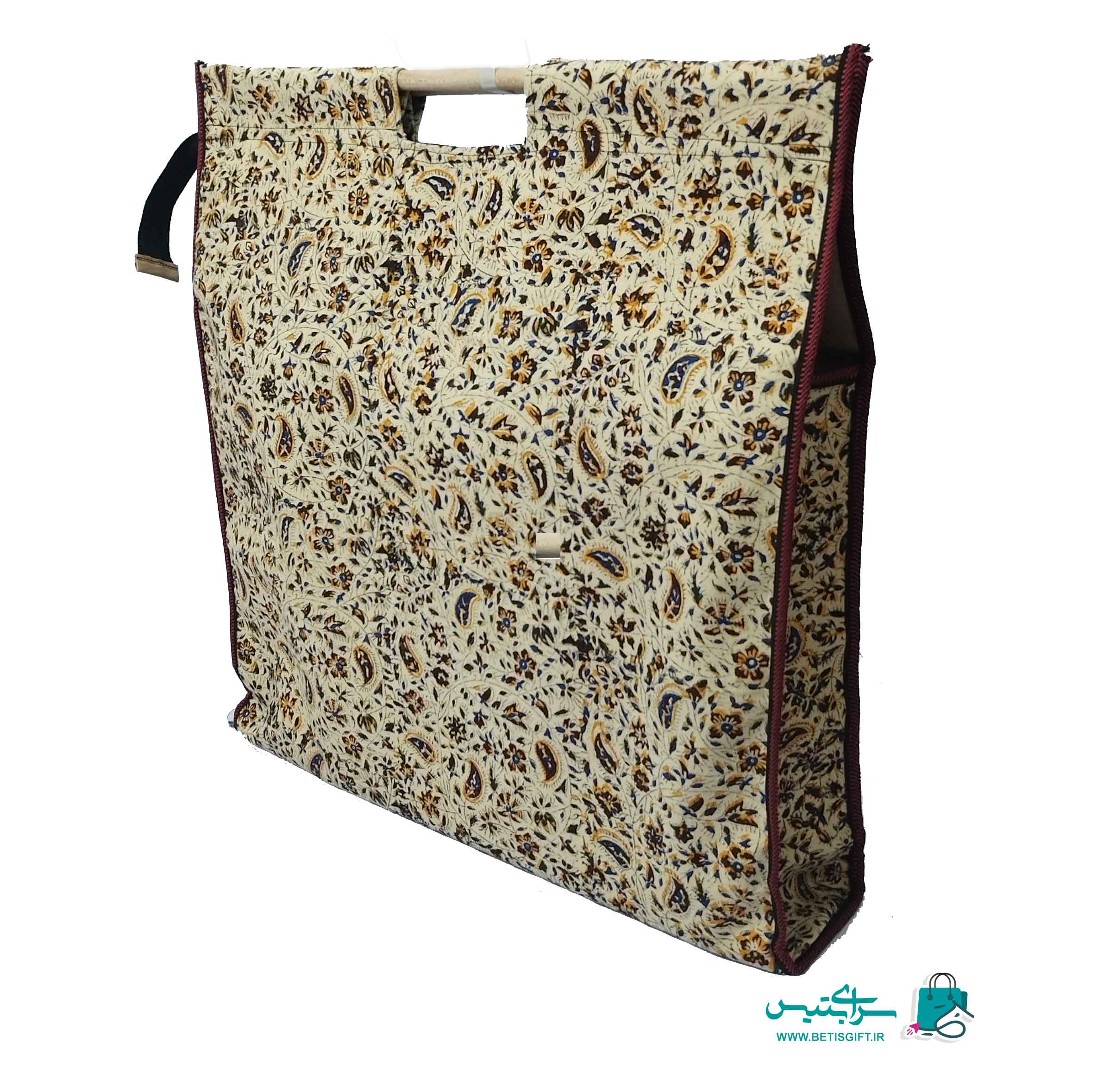 ساک قلمکار طرح سنتی ابعاد 60در60 سانتیمتر با دسته چوبی