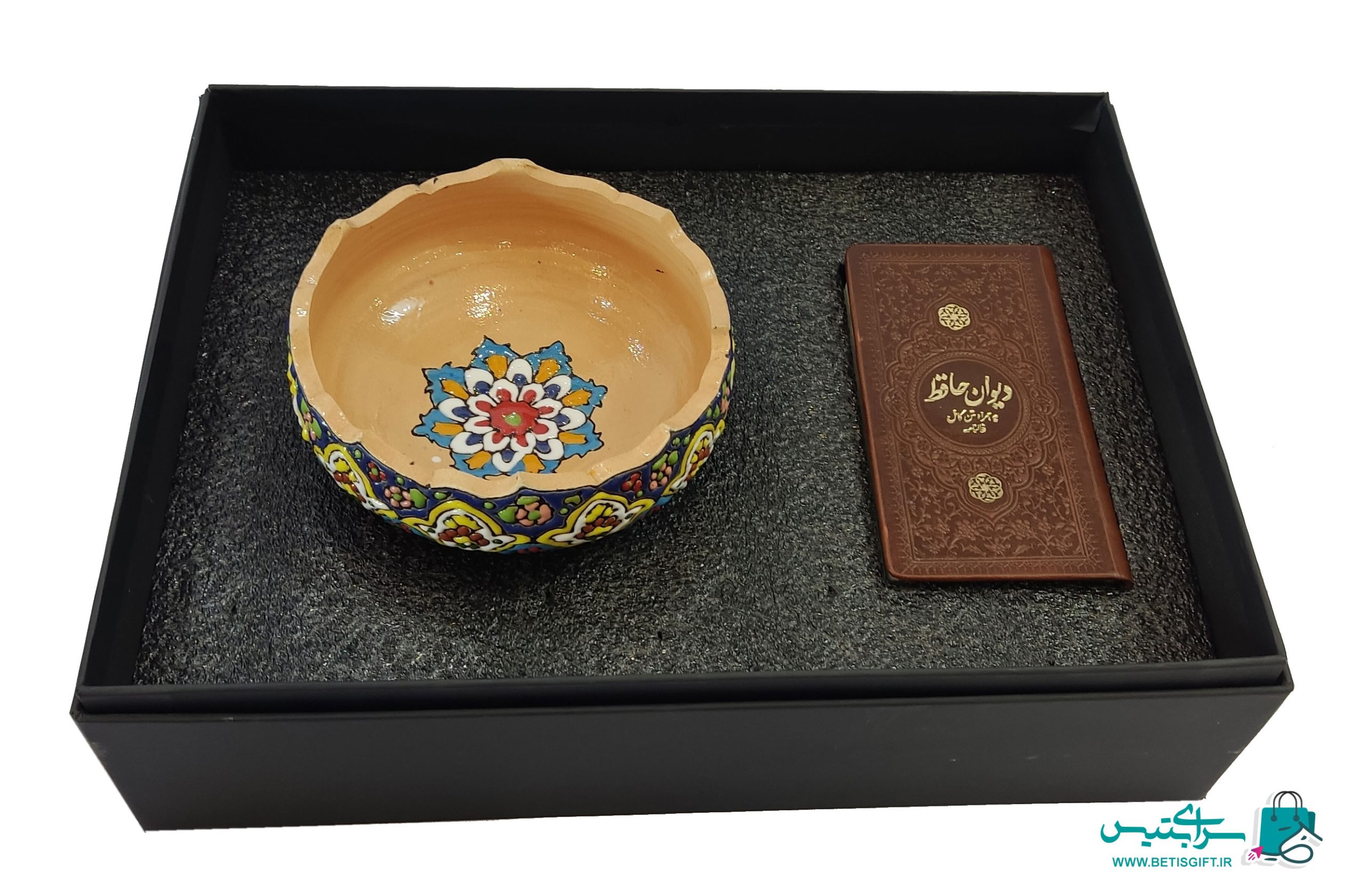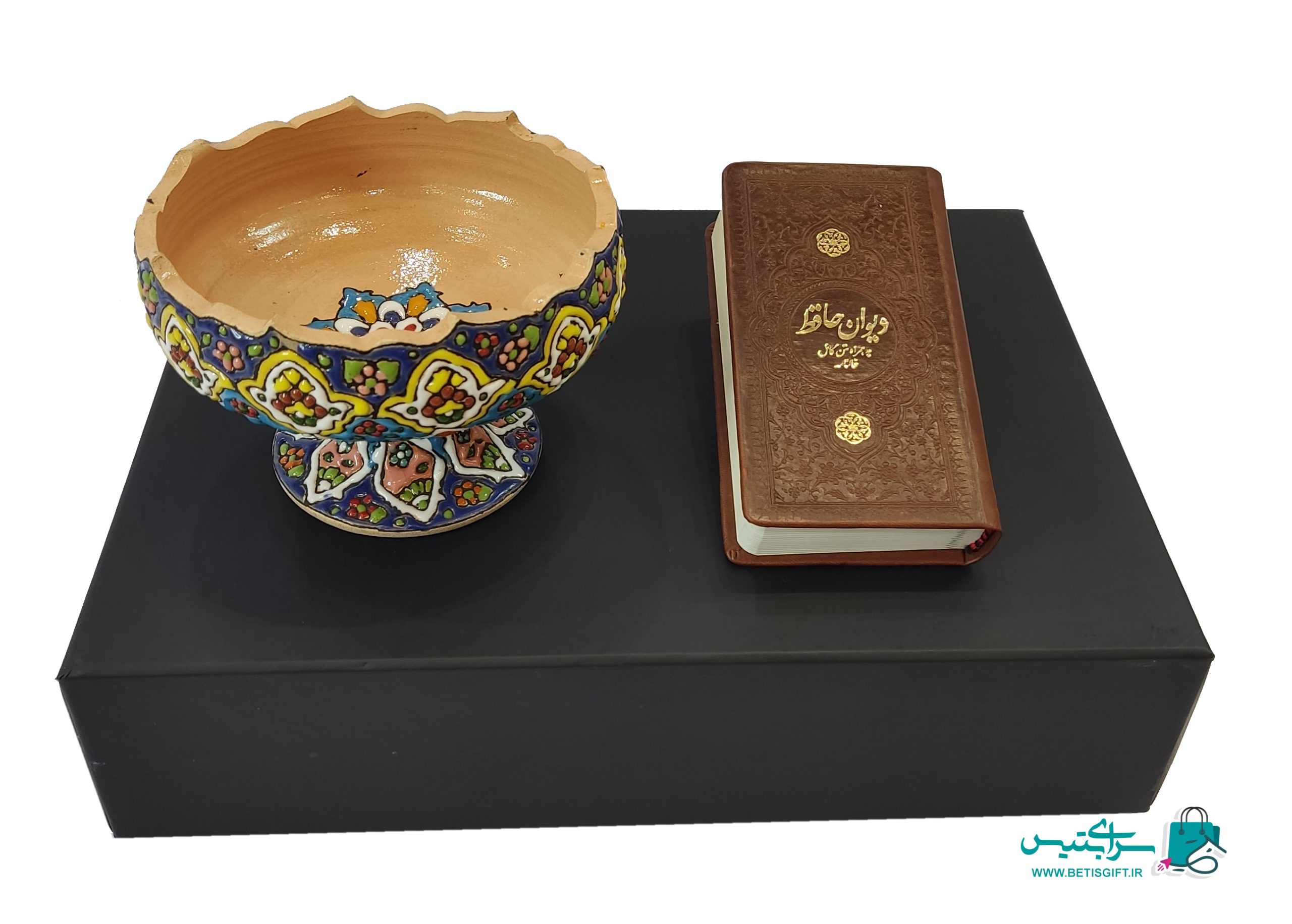 ست هدیه آجیل خوری تک پایه میناکاری و دیوان حافظ