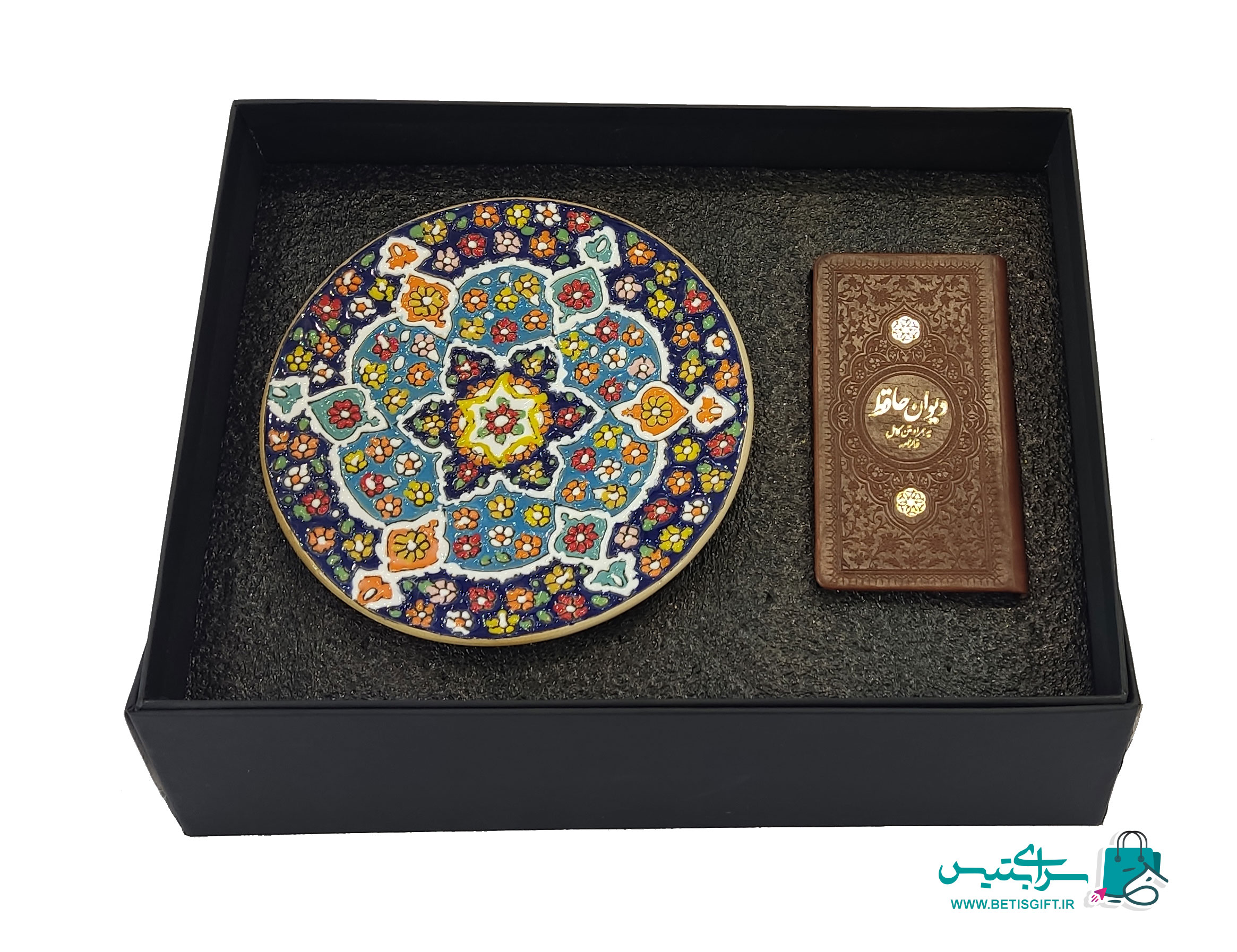ست هدیه بشقاب میناکاری و دیوان حافظ