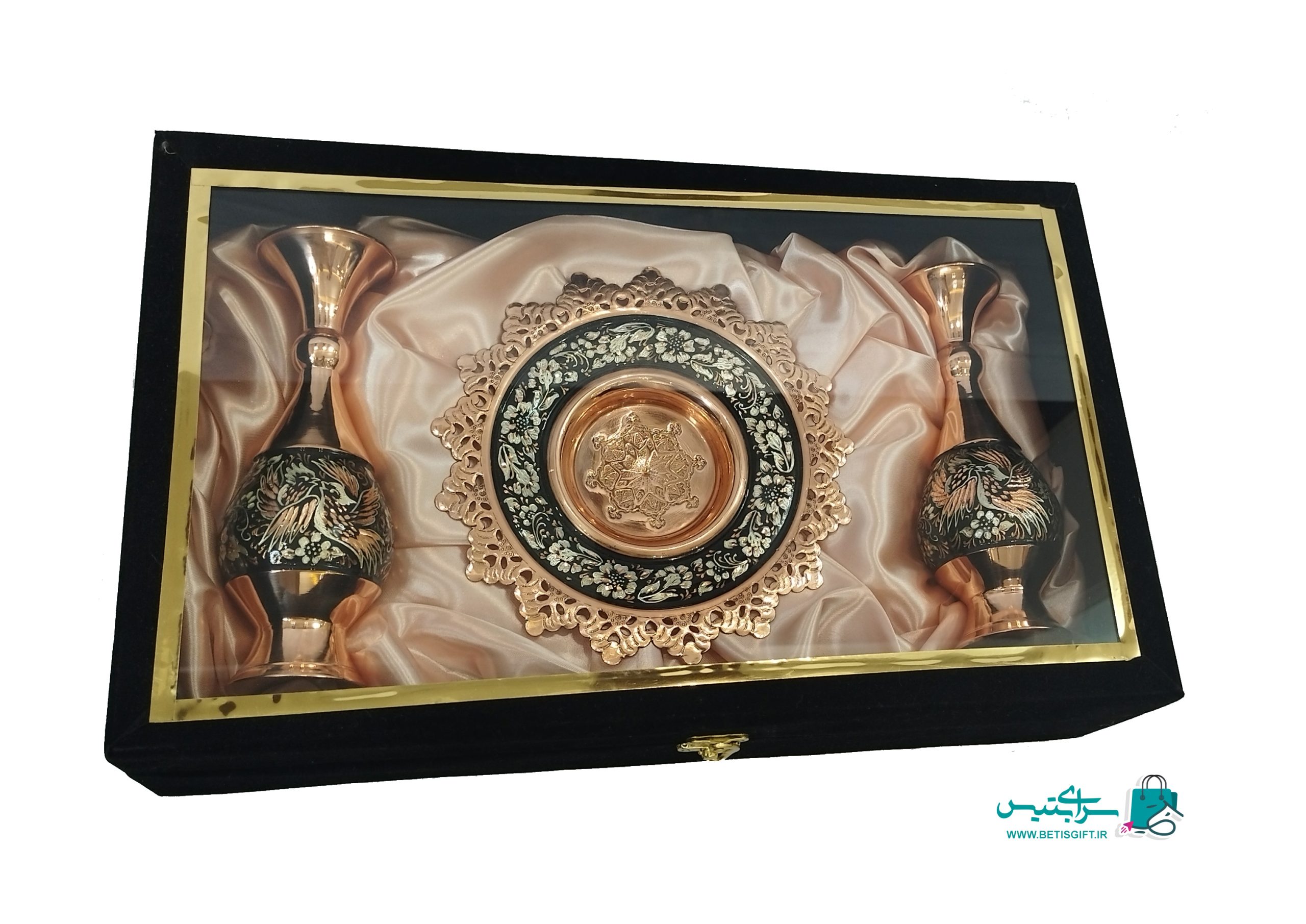 ست هدیه جفت گلدان 20 و بشقاب 20 الماس نقره به همراه جعبه هدیه