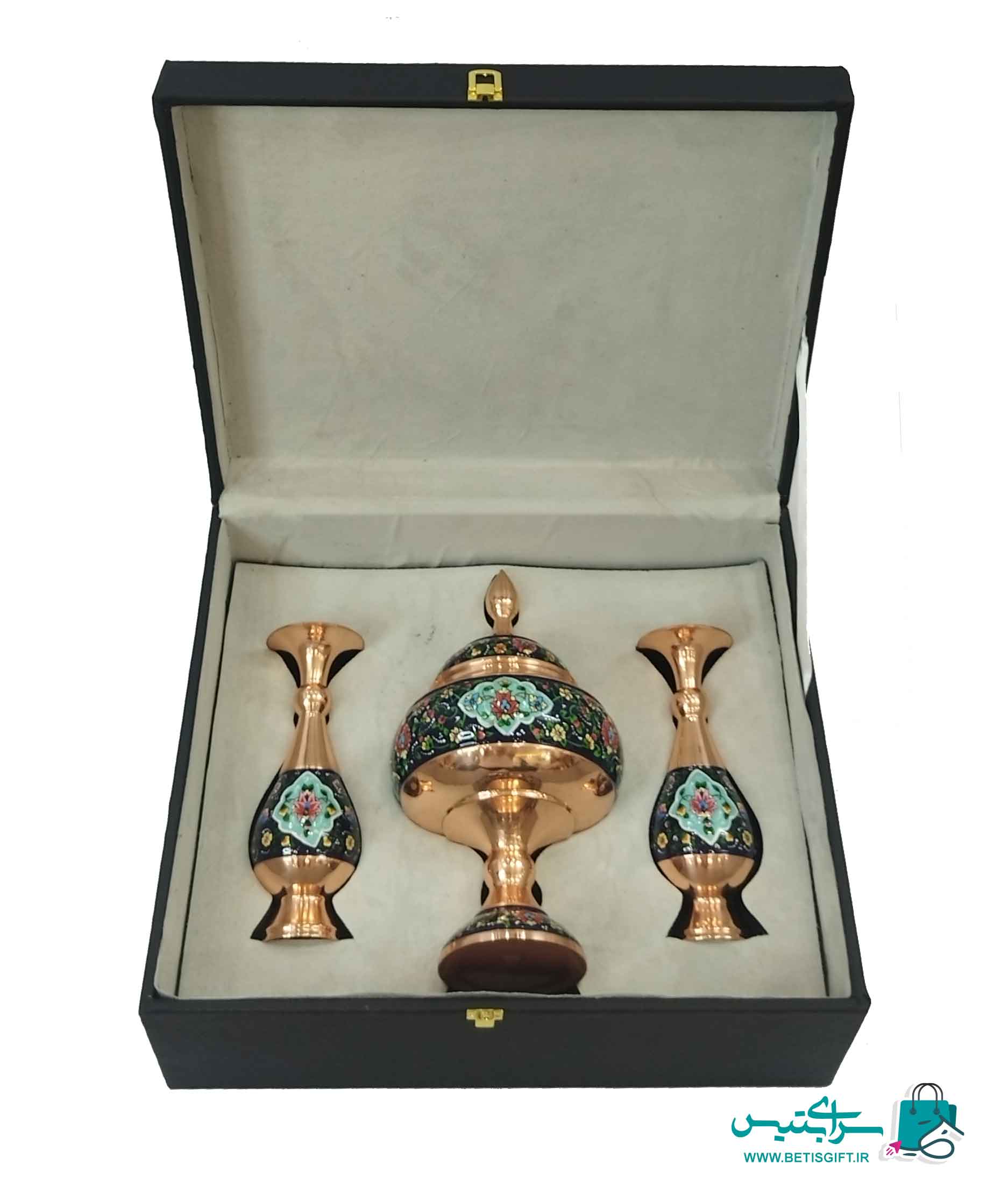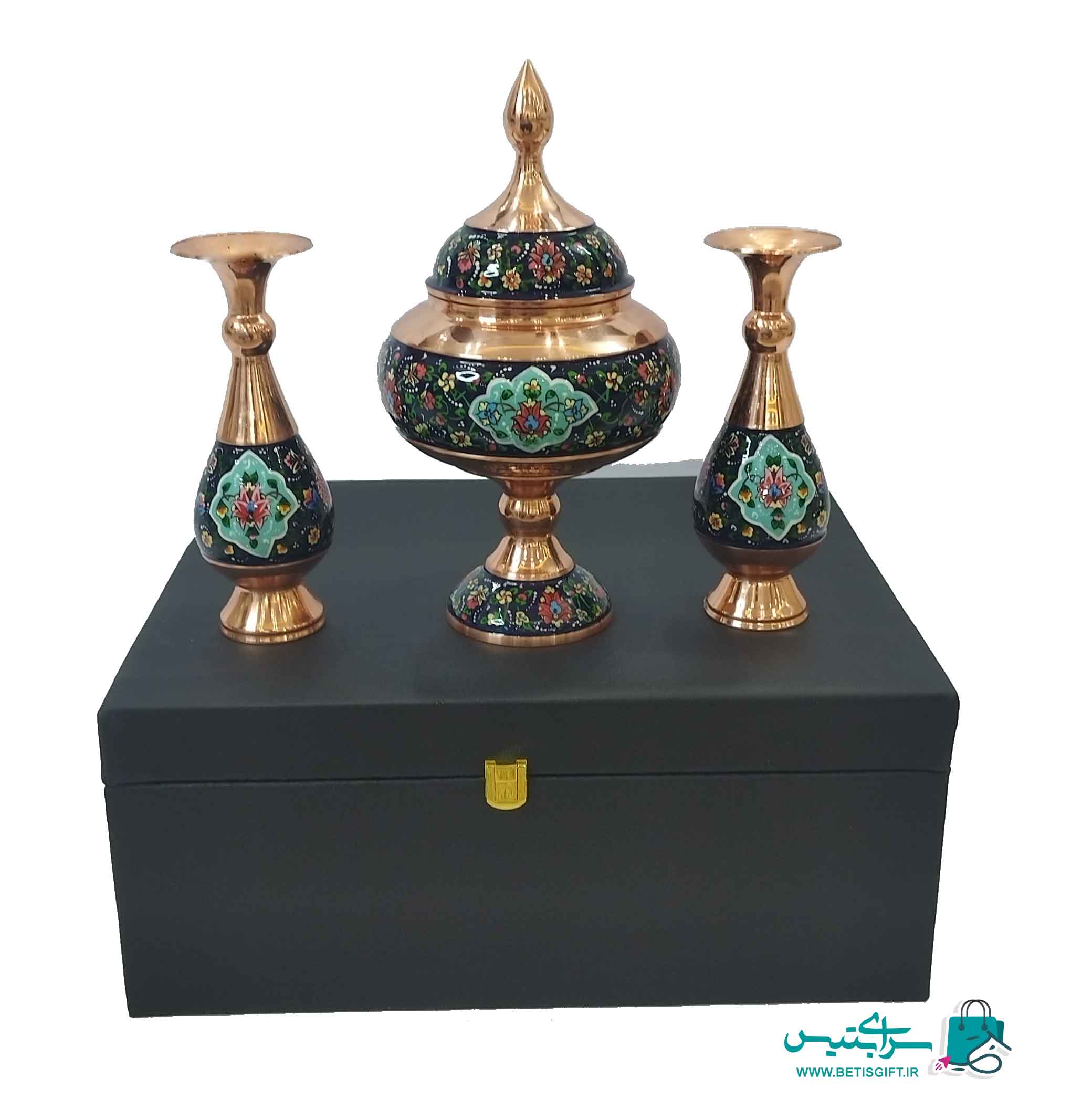 ست هدیه جفت گلدان 20 مس پرداز و شکلات خوری ارتفاع 30 به همراه جعبه هدیه