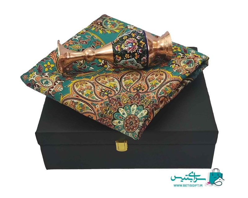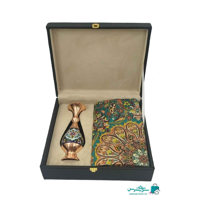 ست هدیه گلدان صراحی 20 مس و پرداز و رومیزی ترمه