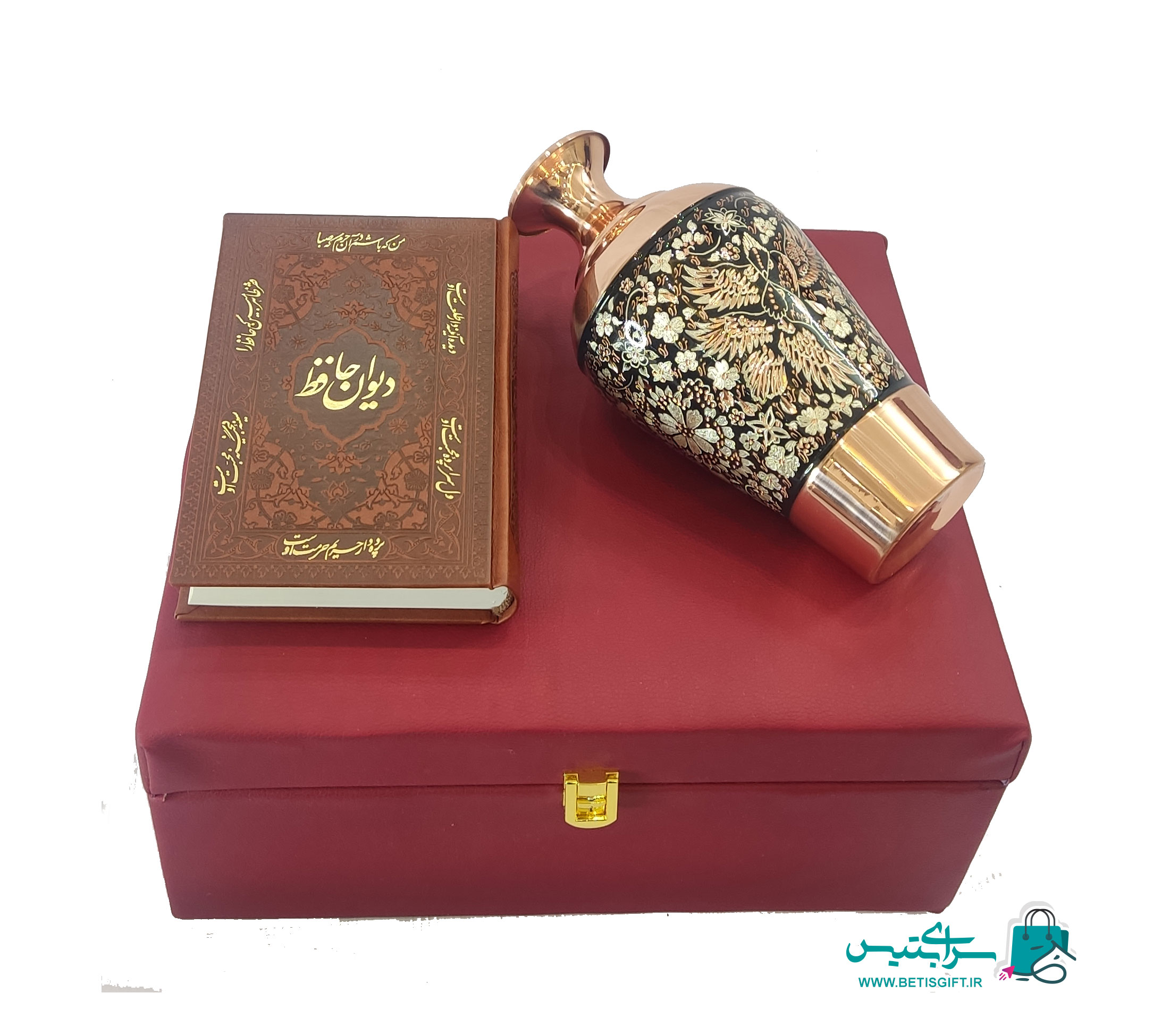 ست هدیه گلدان مس سلجوقی الماس نقره و دیوان حافظ به همراه جعبه هدیه چرم اختصاصی