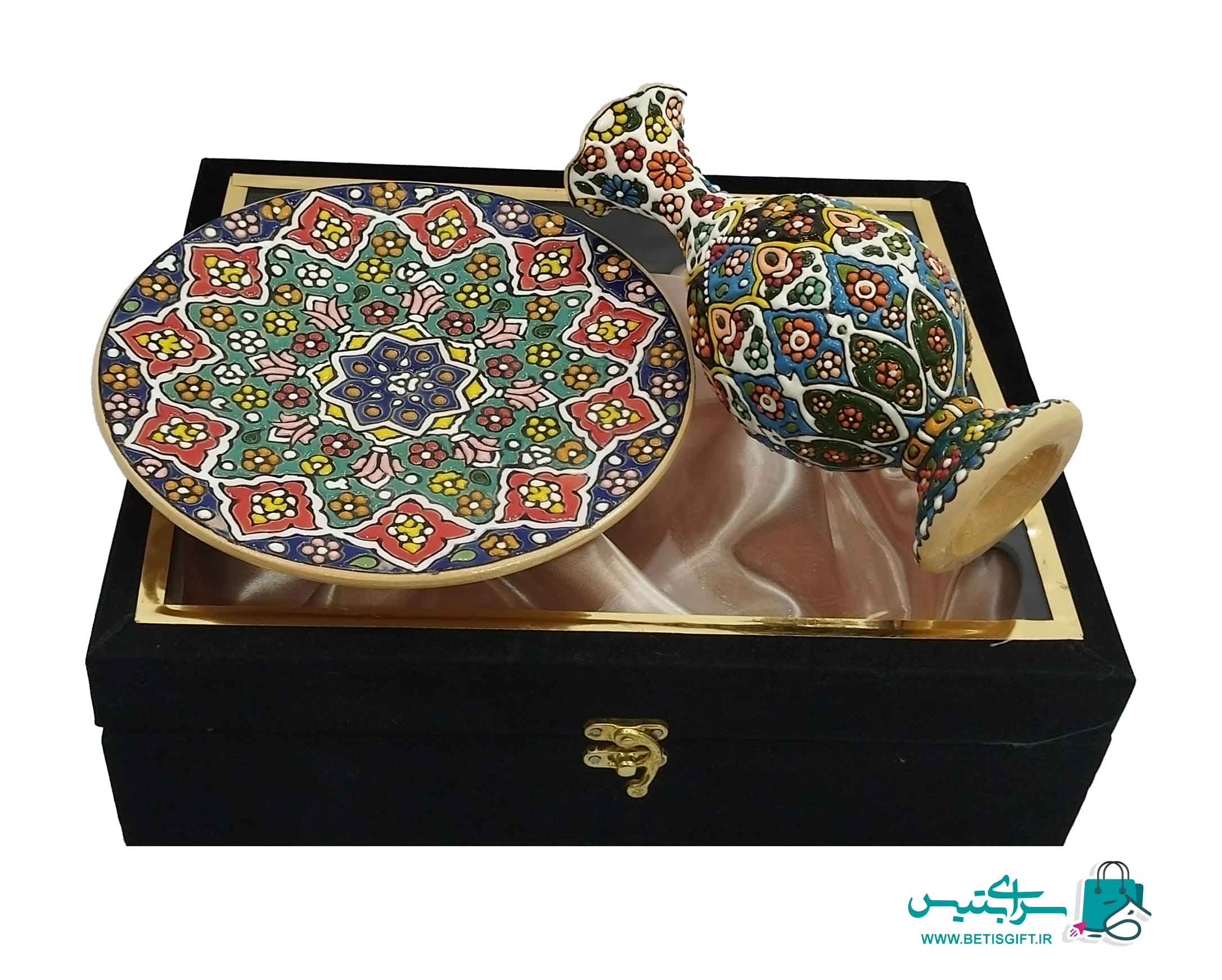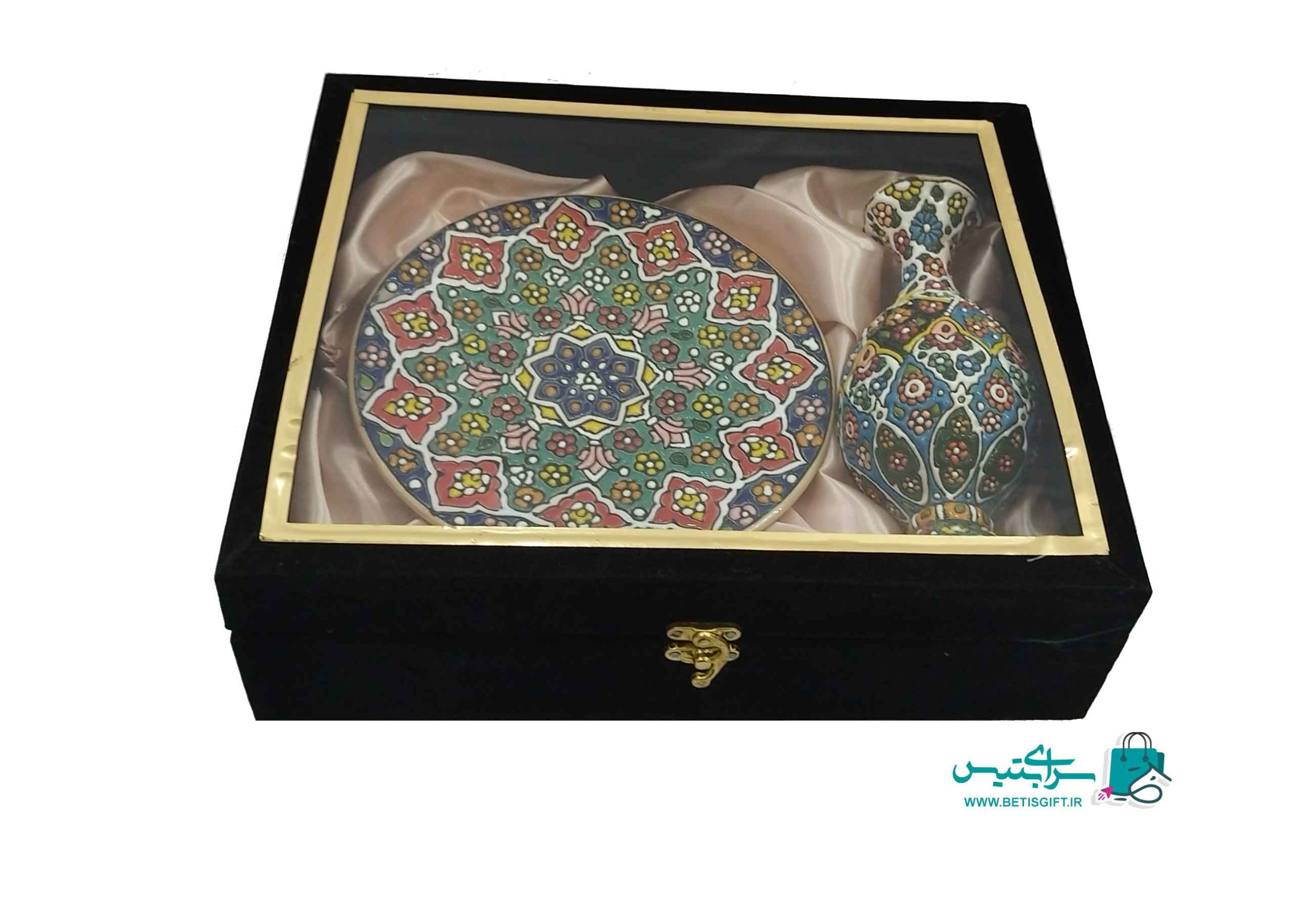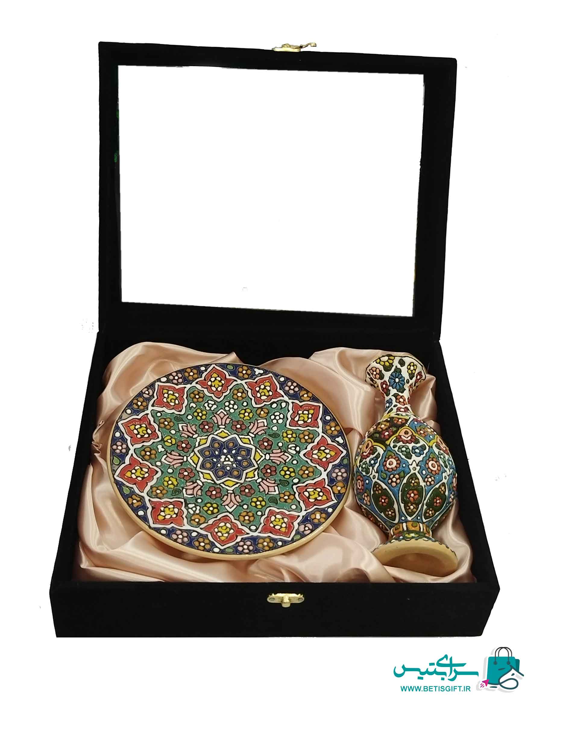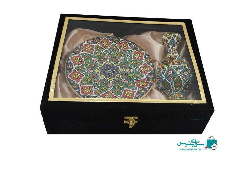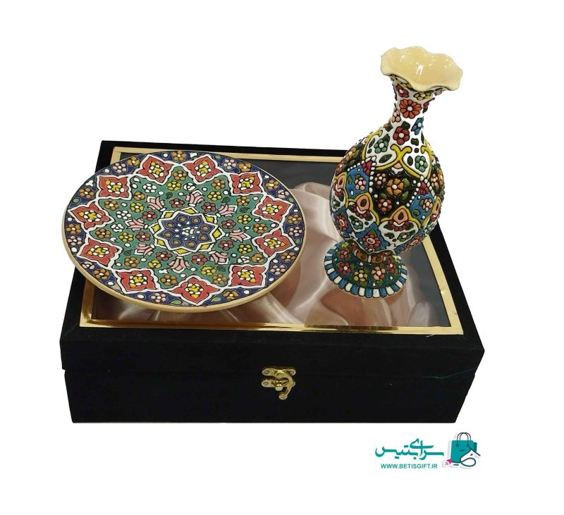ست هدیه گلدان و بشقاب 20 میناکاری به همراه جعبه هدیه