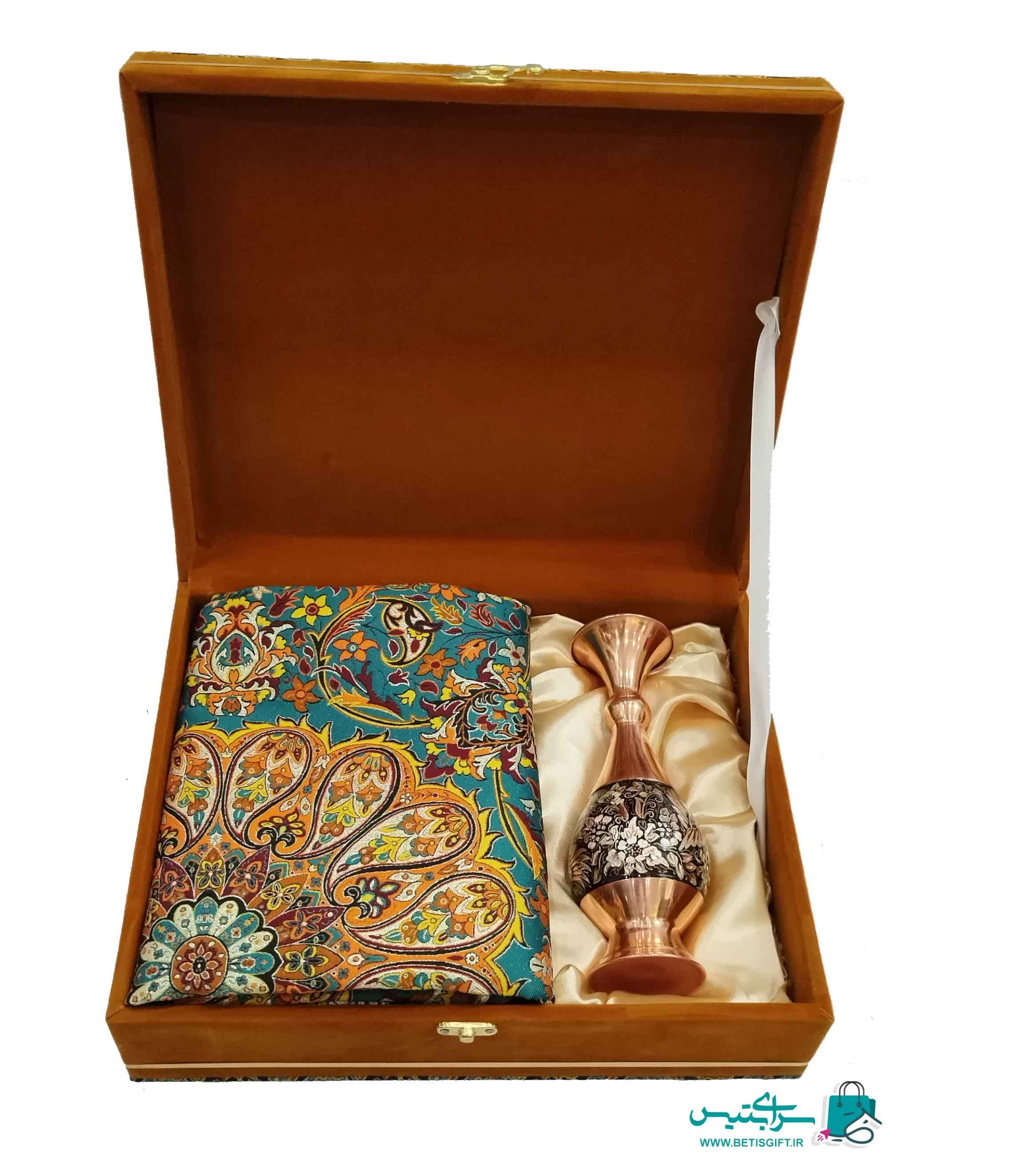 ست هدیه گلدان 20الماس نقره و رومیزی ترمه 1*1 به همراه جعبه هدیه