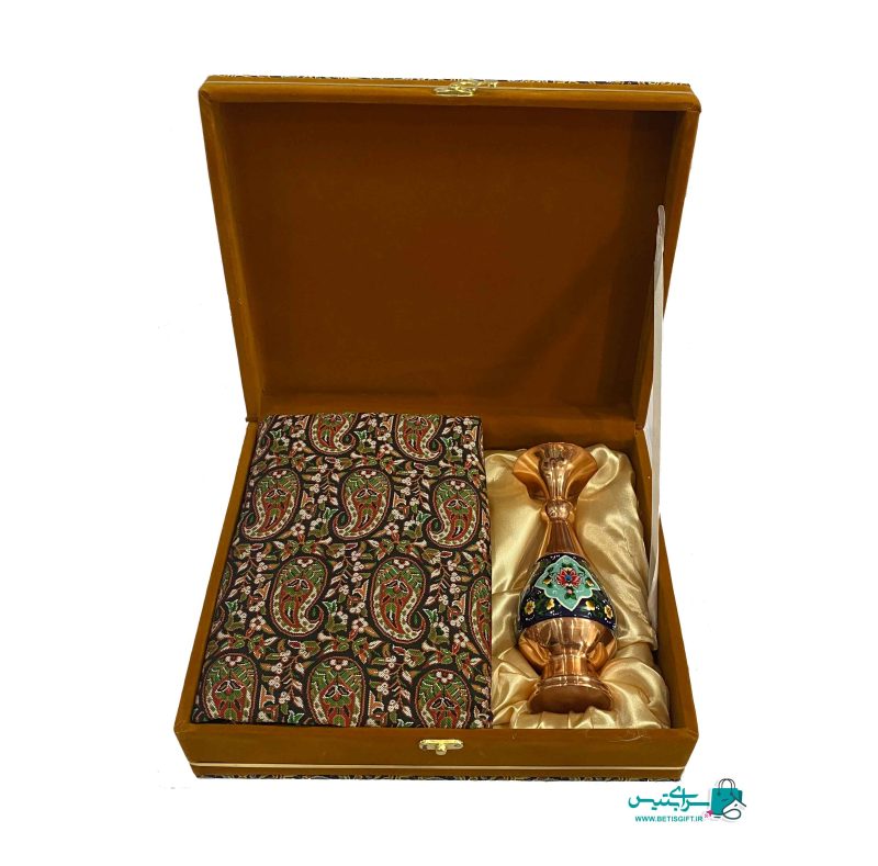 ست هدیه گلدان 20 مس و پرداز و رومیزی ترمه 1*1 به همراه جعبه هدیه ترمه