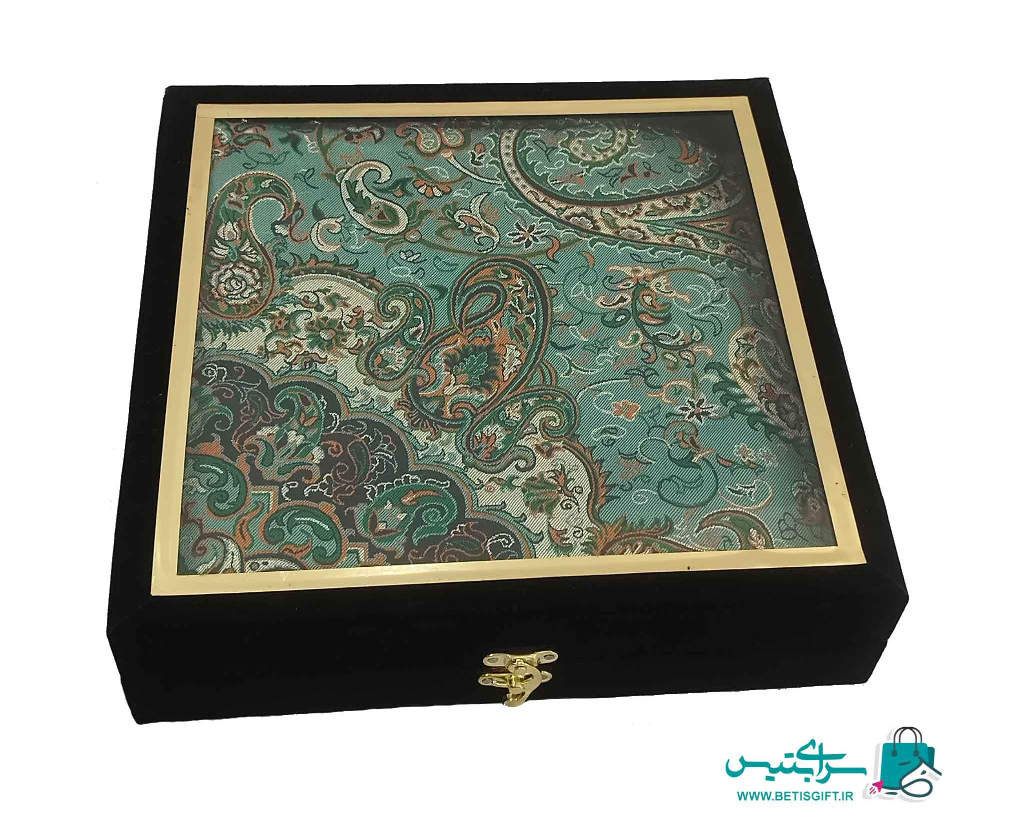 رومیزی ترمه یزد طرح قاجار به همراه جعبه هدیه جیر