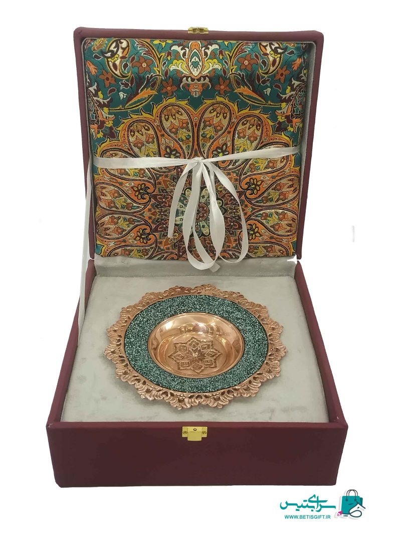 ست هدیه بشقاب فیروزه کوب و رومیزی ترمه یزد