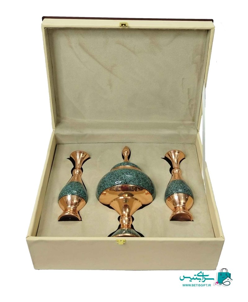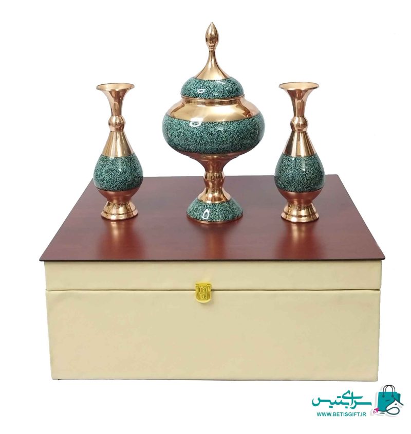 ست هدیه جفت گلدان 20 و شکلات خوری 30 فیروزه کوب به همراه جعبه هدیه چرم اختصاصی