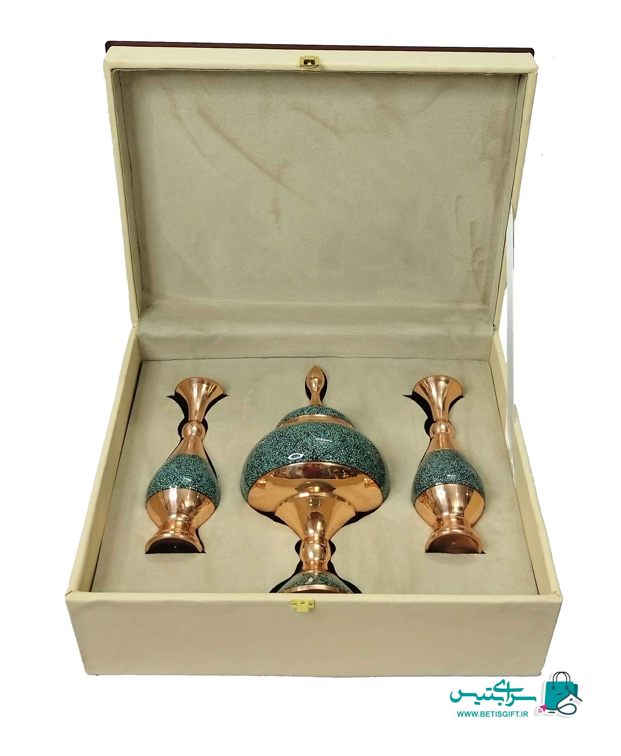 ست هدیه جفت گلدان و شکلات خوری فیروزه کوب به همراه جعبه هدیه